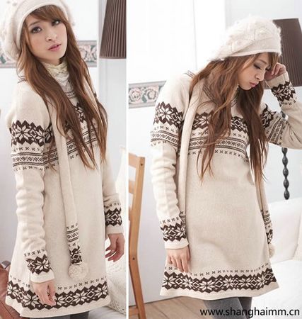 日本VIVI杂志热推的雪花毛衣洋装,可是冬日甜美系女生必备的洋装款式哦!领口、袖口、下摆都有着精致的雪花图样设计,再搭配超可爱的围巾,让您的甜美人气指数极具上升,吸引男生们的注目喔!