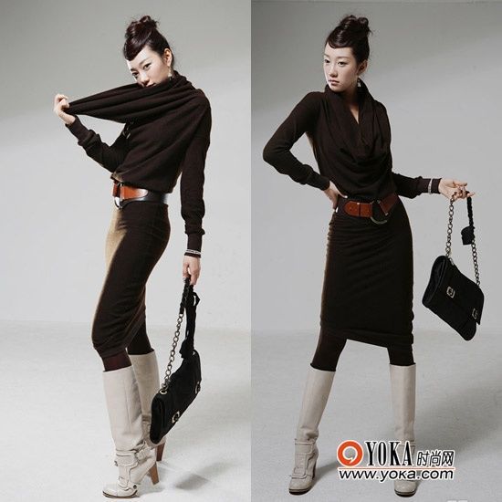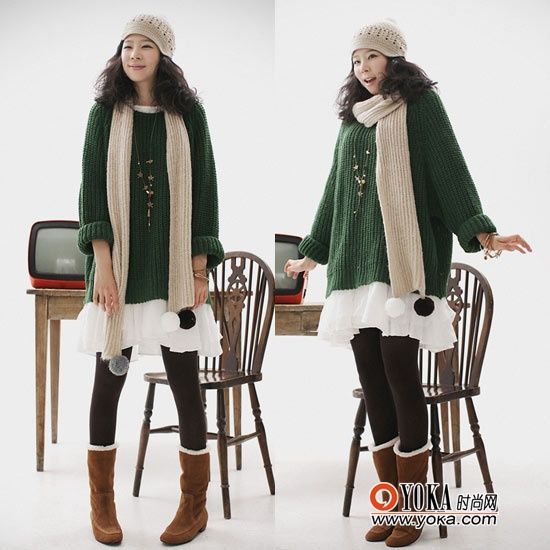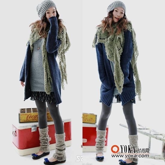 搭配指南:针织连衣裙一直都备受MM们的青睐,加上一条围巾当然更增色不少。