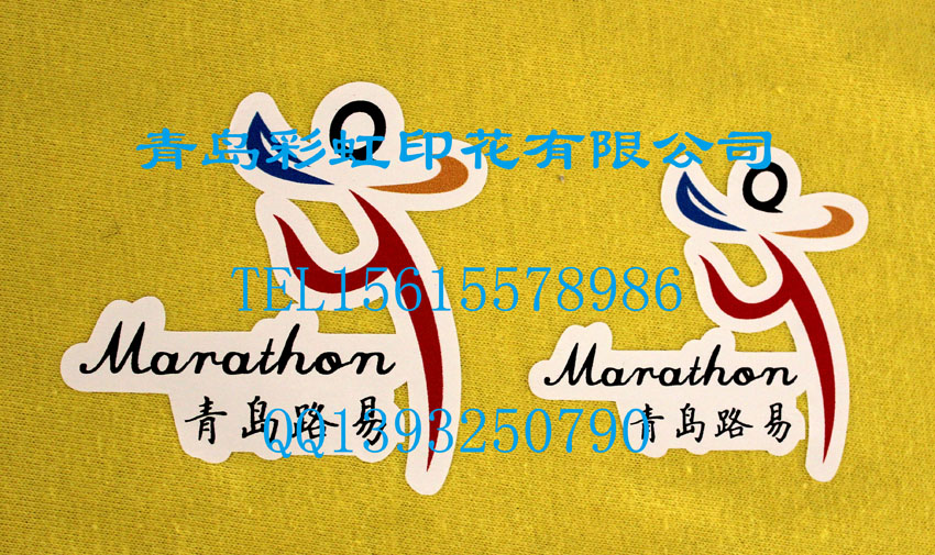 青岛彩虹喷刻一体胶印印花,无需制版,来图即可下单做货,色牢度好,印花不透气,适合LOGO、图案图标印花。;喷刻胶印烫画色彩丰富,可烫印彩色,渐变色,黑白色及金银色等,烫印范围:logo,图案图画,图标,文字,电话号码等。青岛彩虹印花厂位于青岛市城阳区大周村工业园,欢迎广大客户前来合作!