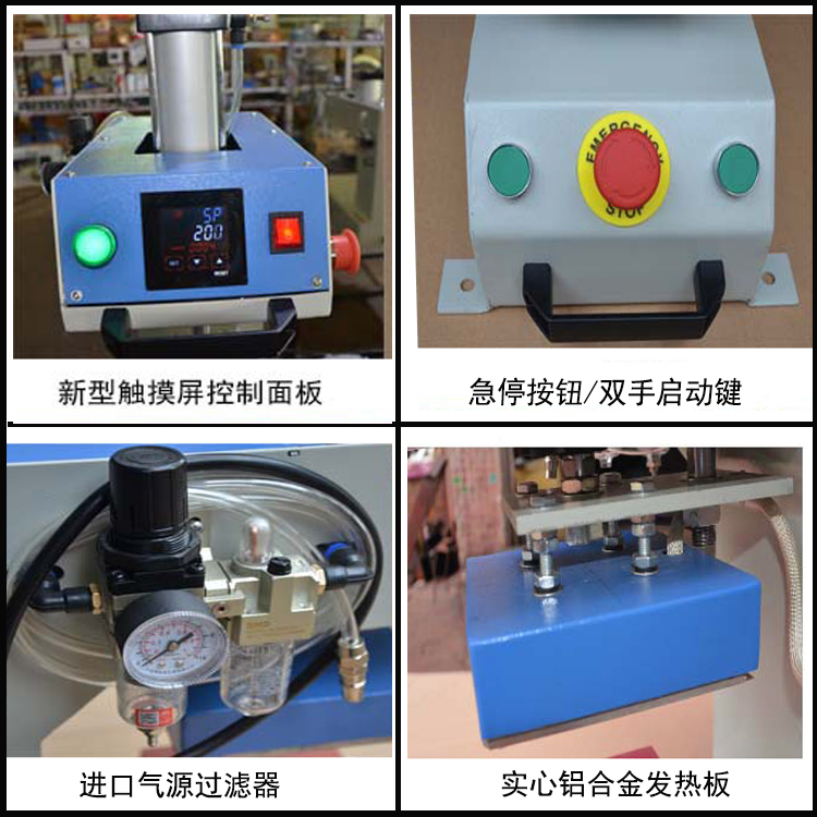 1、压力:不够均匀,先用尺测发热板四边离底板四边距离是否一致,如不一致,可调节发热板中心四务丝杆“下”螺母,向下调紧发热板升高,向“上”调紧发热板降低。压力太大或是太小(通常压为4KG-6KG),调节过滤器上调节阀提上往“+”方向,增加压,“-”减少压力,或是检查空压机压力是否正常(通常空压机压力为6KG-8KG).