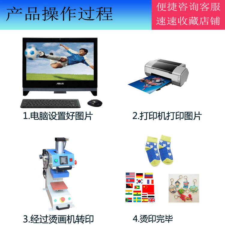 成功的烫印需要有正确的时间,温度及压力的配合,衣服的厚度和材料及烫画纸的各类都影响到烫印的效果,各种烫画纸都需试烫小样后,方可批量生产。