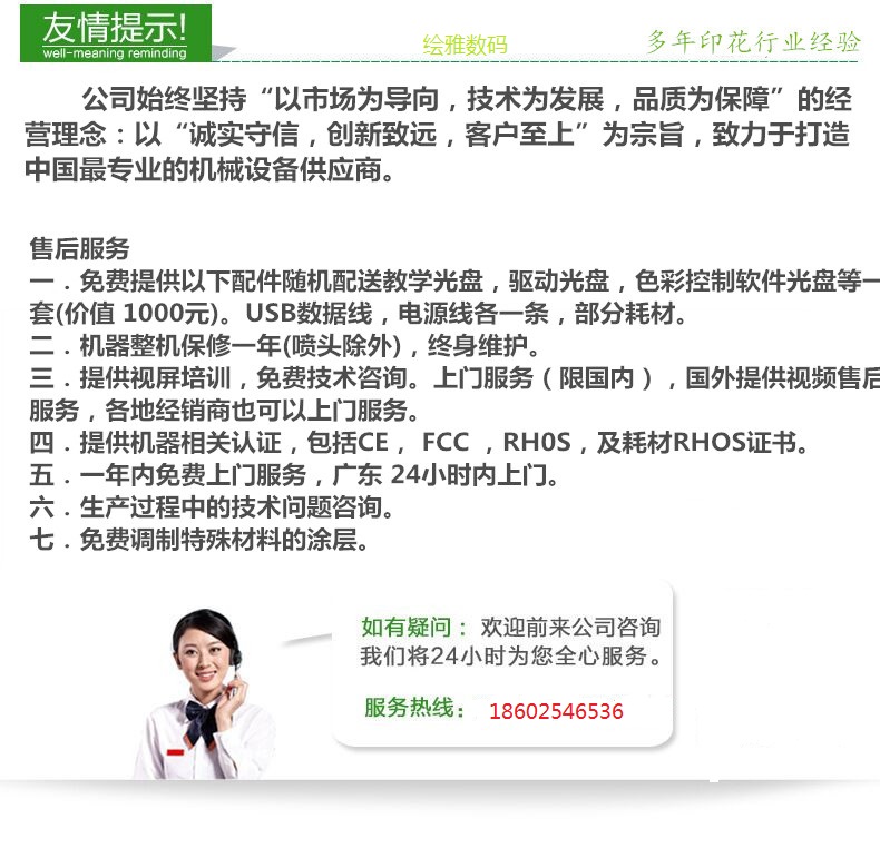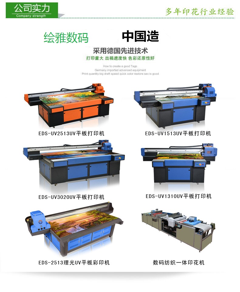 我们坚信:绘雅数码博采众长、融会贯通的技术风格、性能第一、质量第一的产品方针,信誉第一、用户至上的服务宗旨,将是我们占领市场,赢得用户,持续发展的根本保证,我们将继续走在中国UV平板打印机行业的最前列!