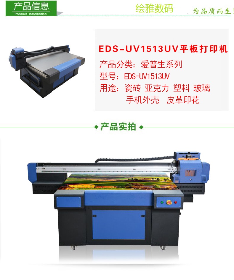 瓷砖印花机--可代替丝印、移印、水转印、转印设备,无需制版、无需套色、制作出比传统方式更高的印刷质量,机器操作简易、性能稳定,完全满足各行业批量生产要求,从而显著提高你产品的市场竞争能力。 适用于厚度20cm以内厚的任何介质,印制材质, 无所不能;硅胶、金属、塑料、木材、瓷器、玻璃、亚克力、石材、竹器、水晶、建材、皮革、布料、情侣套装、油画板、U盘、PVC……只有你想象不到的材质,没有不能印制的材料。就像操作一台家用打印机。塑料打印机特别利用印前的涂层处理液和专用墨水,可在各种介质上经松打印.UV平板打印机(数码印刷机)产品代表21世纪墨水喷雾印刷的革命。新的墨水喷雾打印方式创造出更高的印刷质量.效果好,质量高。
