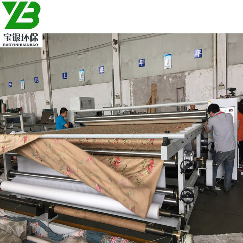 热转移印花机的原理: 热转移印花是近几年来国际上逐渐兴起的一种印染新工艺。首先,用高级印刷技术将特殊的印染(水性或者油性),把所有需要的花色图案印刷到特种的纸上,制成带有各种花式的转移印花机,然后再转移印花机上,将转移印花纸上印有图案的一面与被印织物上,在被印织物上形成所需的各种图案。 本厂引进意大利技术并根据市场需求不断专研、改进、开发ZY系列转移印花机,本机配套自动控边进布器和自动验卷机,使整个印布过程更为方便。 二、本产品适用范围及特点:1、范围:本产品适用于大型条幅、旗帜、无纺布、服装布料、毛巾、被单、鼠标垫等产品的升华转印,特别是成匹布料的连续转印。能够连续印花,速度快,满足客户大批量印花的需求。2、产品特点:本机器为裁片,布匹两用机器,既可以方便快捷的转印各种大小裁片产品,又可以连续转印成匹布料。(1)采用油加温加热方式,加热均匀(2)数字化温度及变频控制器,速度可调(3)机器带三米五长单层工作台,有输送带方便客户输送成品台片(4)机器带有加压系统,能满足不同产品对压力的不同要求(5)采用进口发热管,发热均匀,持久耐用,采用进口毛毯,毛毯不易跑偏(6)机器毛毯为脱离式,毛毯不易烧坏,带有三放两收装置,方便客户收放产品 本厂的毛毯是采用的美国杜邦原材料生产上海制造的,滚筒为双层防爆滚筒,双层比单层的更安全、更牢靠。机械配置上我们还赠送两根气涨轴(一收一放),有效门幅面可根据客户需求来定制!我们的价格也是因为质量而定的,我们有信心把机器做到最好,所以我们对顾客也是有保障的!选择我们的机器是不会错的!我们的产品质保一年,终身服务客户。