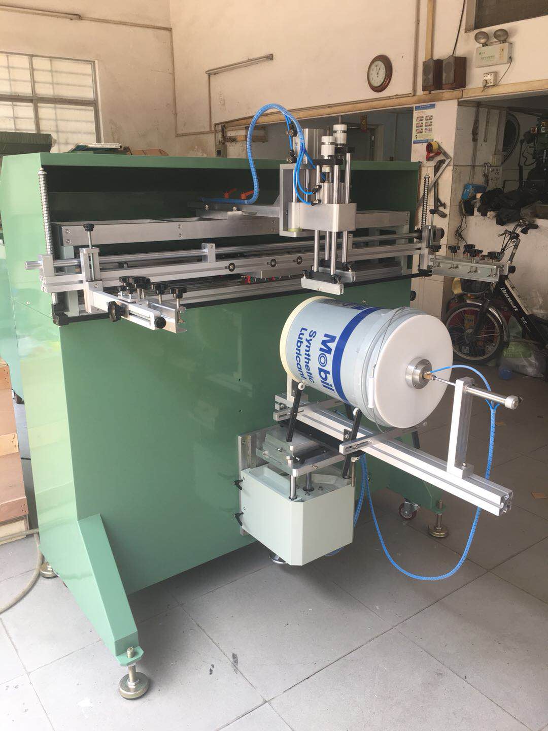 不锈钢铁桶滚印机垃圾桶网印机垃圾箱丝印机喷雾器桶丝网印刷机印刷速度快,精度高,色彩鲜艳,墨层厚,立体感强,丝印效果显著,节省人工,提高产能全自动曲面旋转印刷机塑胶、玻璃、陶瓷、木材、金属等材质制成之的圆筒、椭圆、扁型产品的曲面丝网印刷。印刷产品例如:唇膏外壳、化妆品瓶子、洗涤剂瓶子、饮料瓶、杯子,滤清器、罐子、玩具等。。。。。大型转盘丝印机全自动机械手上下料丝网印刷机,广泛适用于:电子电器,广告,包装印刷,运动器材,玩具,文具礼品等行业。产品例如PCB、LCD、EL、IC、SMT等。同时该机型也适宜其他精密印刷,贴纸、陶瓷花纸、薄膜开关(按键)、海报、汽车玻璃、仪表、建筑饰板、铭板、广告牌标牌等。176余2012先2274生