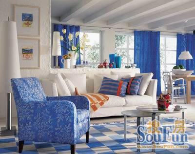 偏好乡村田园风格的人,也可以选择清新的大地自然花草或永不退出流行的格子布料,只要在色调上挑选适合夏天的冷色系,搭配原木或皮革材质的家具,就很有夏天的味道。