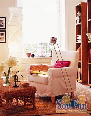 布艺装饰包括窗帘、枕套、床罩、椅垫、靠垫、沙发套、台布、壁布等,它们是居室的有机组成部分。但是布艺装饰必须遵循协调的原则,饰物的色泽、质地和形状与居室整体风格应相互照应。比如居室层高不高的,不宜采用大花或具有扩展效果的窗帘,应选取竖纹或浅色小花型的窗帘以调节视觉,延展空间;藤器家具质地较硬略陈旧,但带有浓厚自然气息,如果配合花色明快的布艺坐垫和抱枕等,正好弥补了这个缺点。