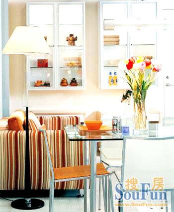 使空间显得玲珑:在醒目处采用亮眼的窗帘布幔、床罩和桌布,使其与地板和墙壁间形成鲜明对比。可选用毛质粗糙或布纹较柔软、蓬松的材料以及具有吸光性质地的材料来装饰地板、墙壁,窗户则可大量选用有对比效果的材料。