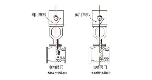 加热的执行元件为电动阀门,电动阀门主要制进入热油量的大小。阀门电机的正反转就可以改变进入油量的流量大小。而DTV就可以通过控制阀门电机的正反转以及正反转的时间来控制进入油量的大小从而控制设备内部温度,如图4所示。