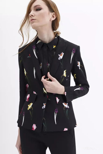 黑色点缀兰花图案,宝姿秋冬系列延续春夏印花风潮,将摩登且充满女性柔美的一面全然展现。