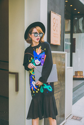 独具一格的撞色印花图案,加上拼接的雪纺鱼尾下摆,个性十足的同时不失女人味,绝对不会撞衫。无论是用来单穿还是打底都是极好的,都会穿出不一样的风采。面料不会粘毛也不会起球,所以大家不用担心会影响穿着的效果。