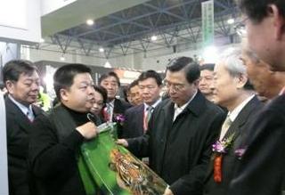 在旭荣集团的展位,张德江副总理对该企业所具有的强大的研发实力和新型环保理念称赞有加。