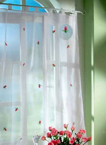 【集萃网观察】在一个温暖的早晨,和煦的微风吹动着浴室敞开的窗户。由印有简单花纹而未经漂白的薄纱织物制成的装饰性窗帘,在让新鲜空气进入的同时使光线散射以保持你的隐私。这种创意来18世纪的法国木制印板,但是要有一些材料设备,例如:樱桃木、方形印板或是带圆点花纹的布料。你可以自己动手制作,窗帘边做成环形,称为饰边小环,用以穿挂窗帘线、吊钩和孔眼。当阳光透过窗帘时,精美的花纹给人留下深刻的印象。